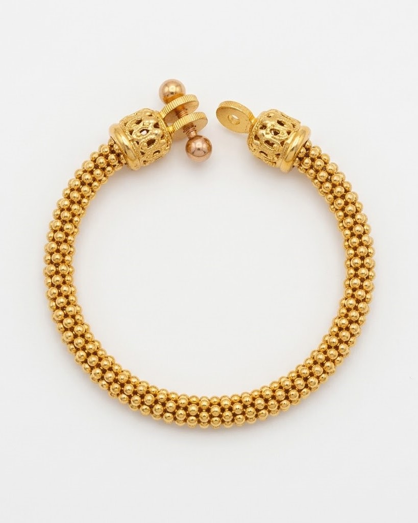Un classico senza tempo. La chiusura a vite e la doratura a 14 KT di questo bracciale sono un segno di qualità e buon gusto.