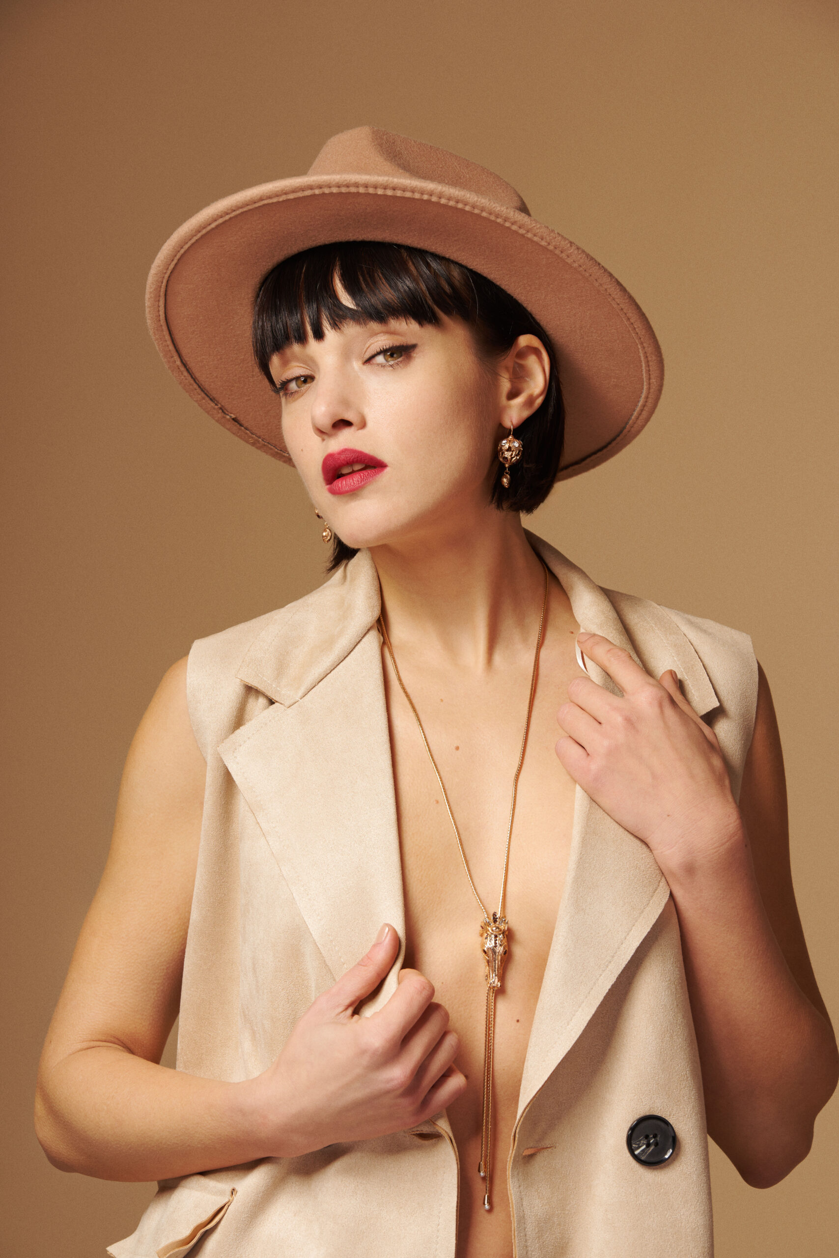 Più di un gioiello, un talismano. Un saliscendi scultoreo dallo sguardo magnetico, ispirato alla forza dei destrieri medicei. Lega demirouge, dorata in Oro 14K con un cuore meccanico a vista: l’eleganza di Firenze che non passa inosservata.