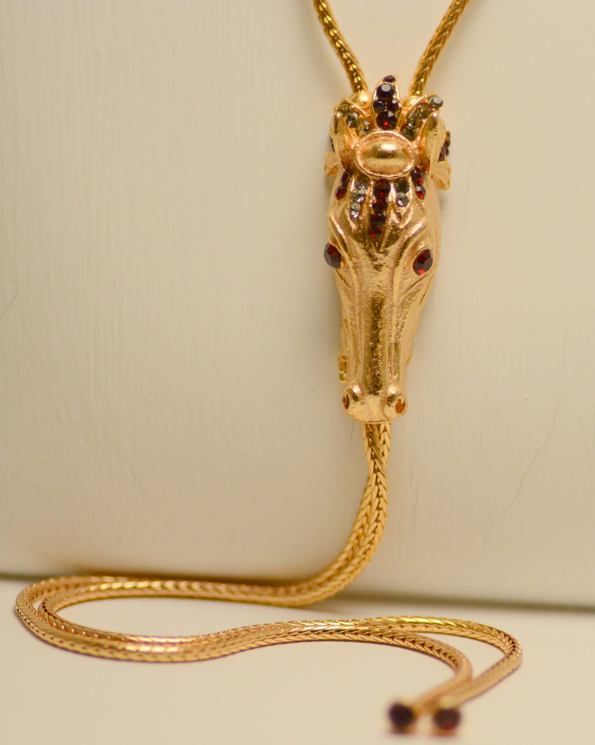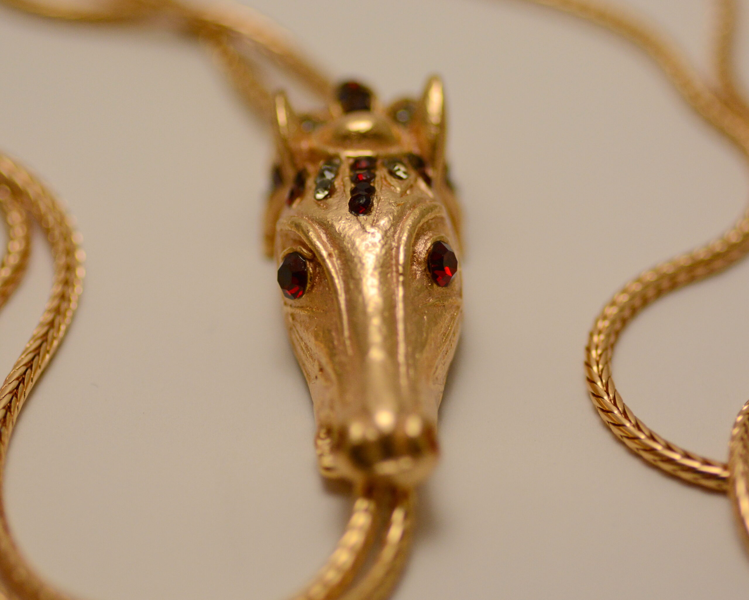 Lasciati catturare dallo sguardo fiero di questo capolavoro dell’artigianato toscano. Non è solo una collana, ma una scultura in movimento che celebra la nobiltà del cavallo attraverso un design che fonde l’estetica barocca con una sofisticata ingegneria artigianale.