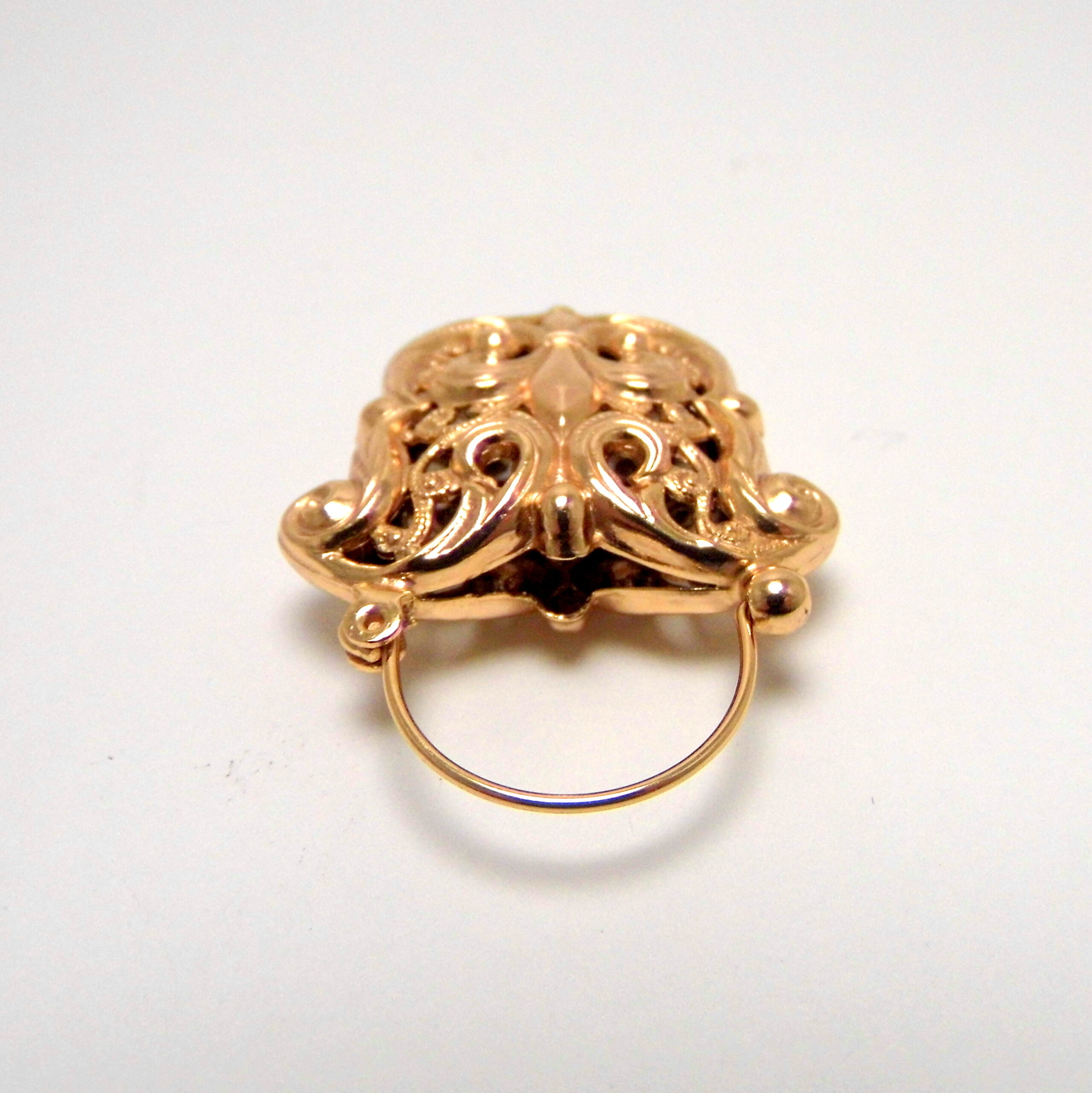La speciale doratura a 14 carati conferisce agli orecchini un aspetto ricco e regale, con una finitura calda e duratura, simile all’oro rosso o al “Princisbecco”. La luce si riflette magnificamente attraverso gli intarsi e gli spazi vuoti delle creole, creando un affascinante gioco di luci e ombre che impreziosisce chi li indossa.