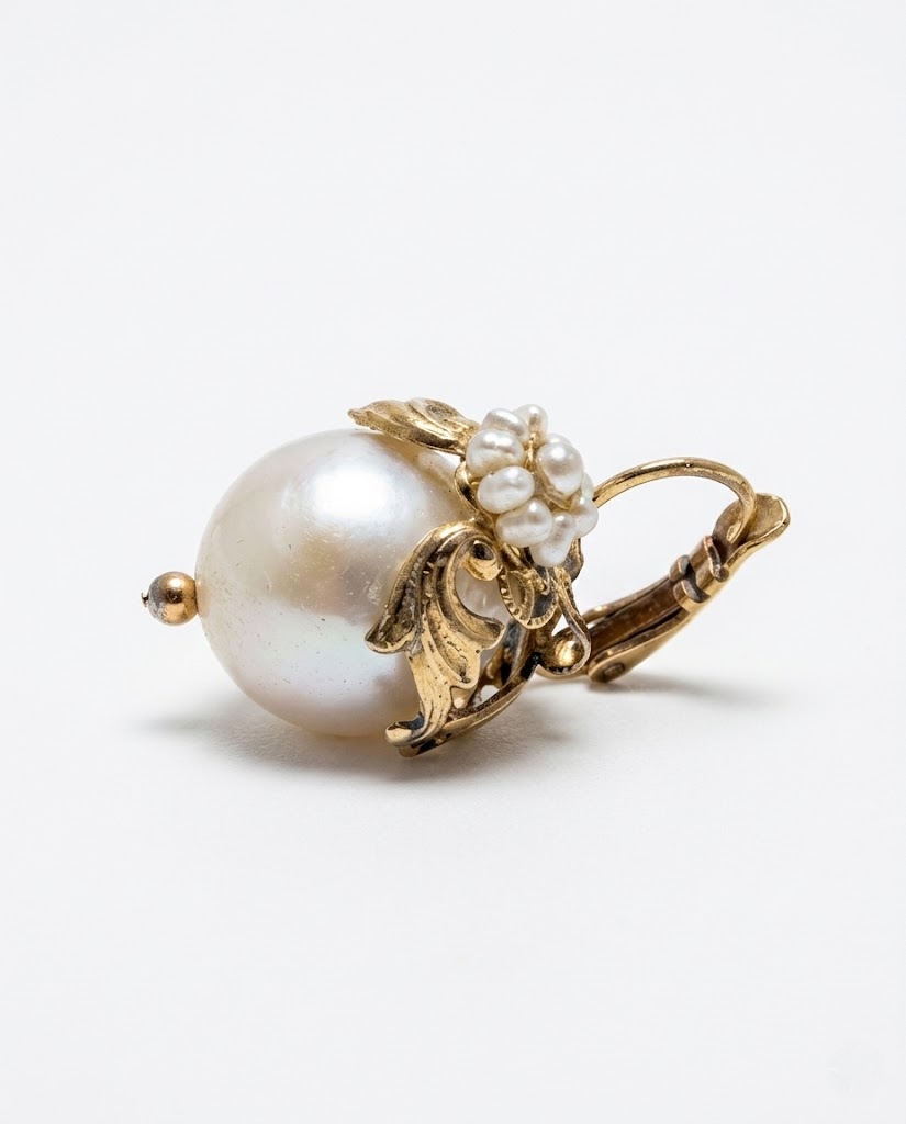 Immergiti nel fascino senza tempo con questi squisiti orecchini artigianali. Ispirati alla Belle Époque, presentano delicate sfere di perle scaramazze barocche sormontate da un elegante cappuccio ornato da timidi fiori e un piccolo ovale di perle di fiume.